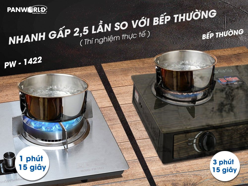 - Tiết kiệm thời gian, tiết kiệm Gas khi nấu ăn nhanh X2,5 lần so với bếp thường.