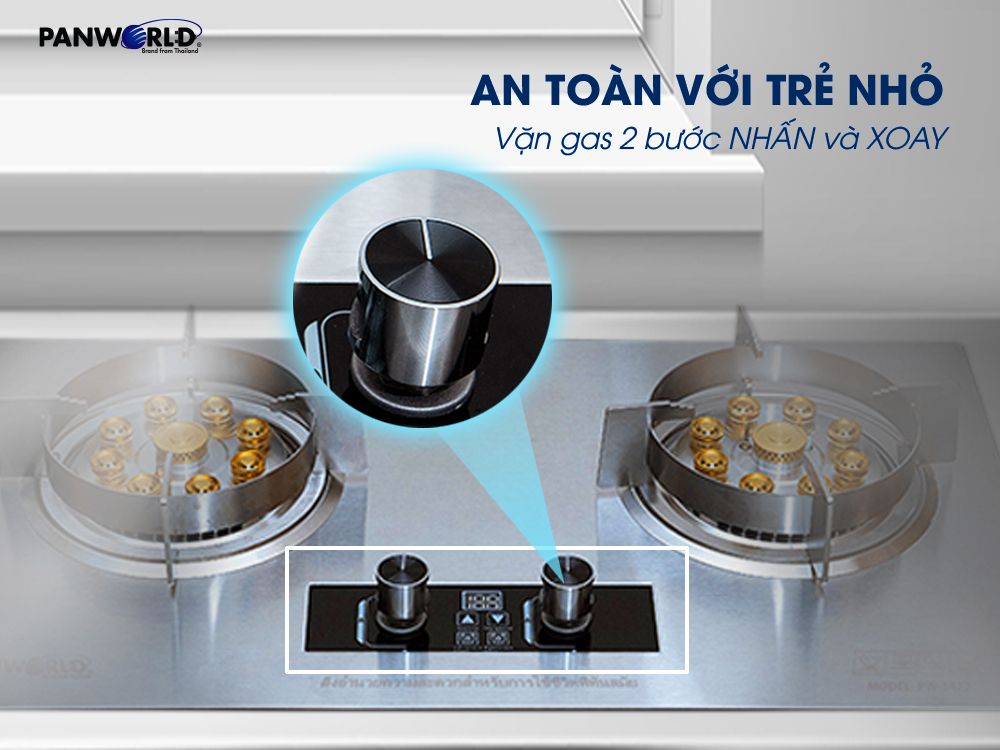 - Chống trẻ nghịch, đảm bảo an toàn với công tắc vặn gas 2 bước