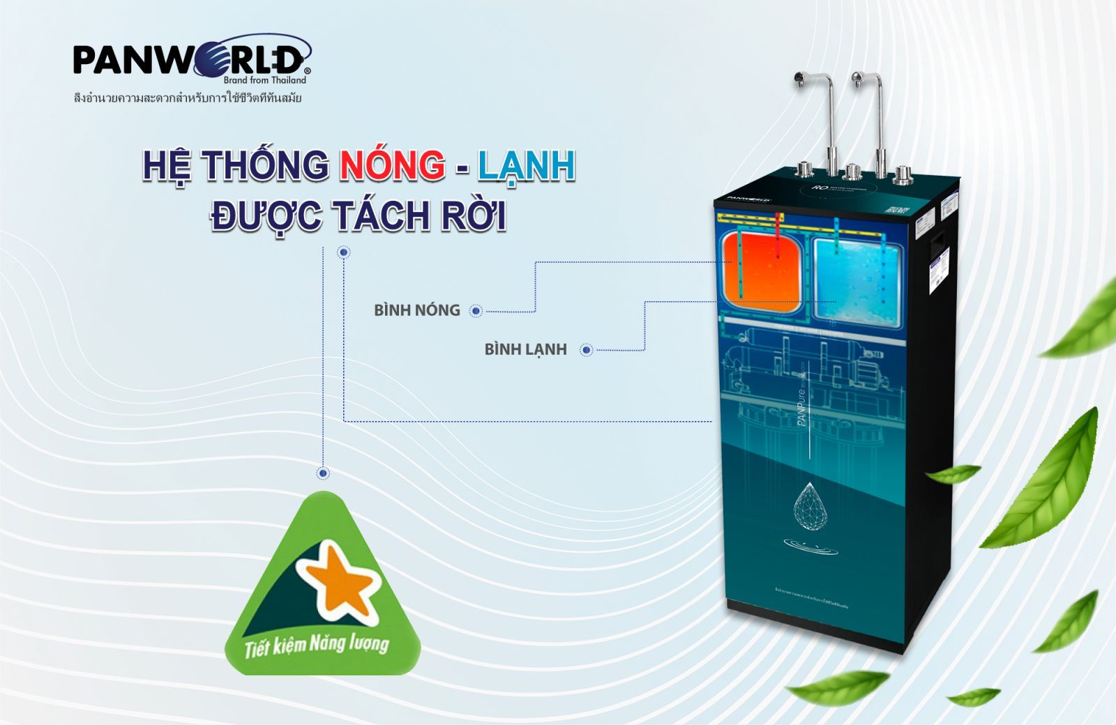 Tách rời giữa hệ thống lọc và hệ thống làm nóng/lạnh giúp tiết kiệm điện tối đa.