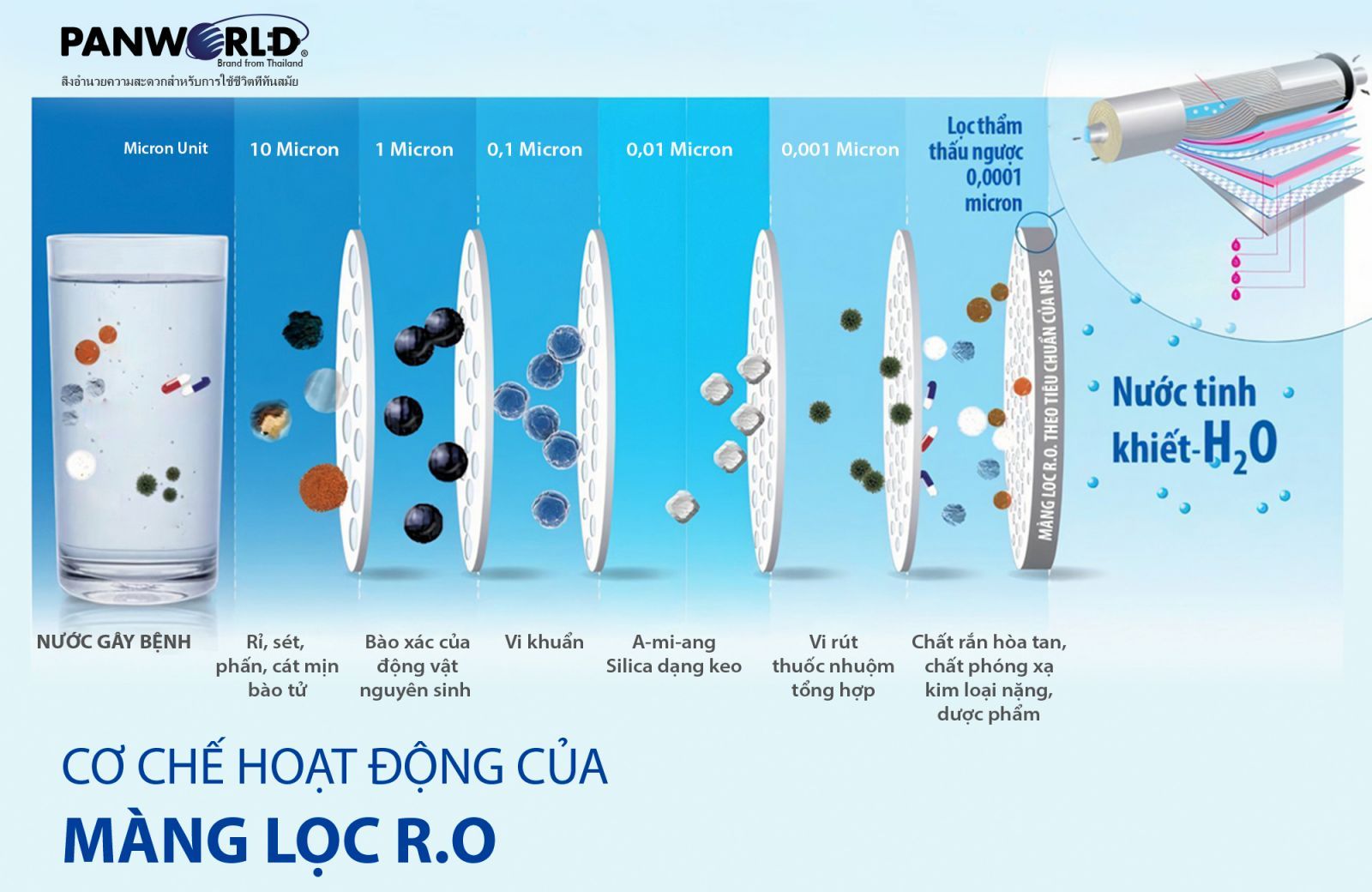 Sử dụng màng lọc đạt tiêu chuẩn NSF (viết tắt của National Sanitation Foundation) là trung tâm hợp tác về an toàn thực phẩm và nước uống của tổ chức y tế thế giới (WHO)